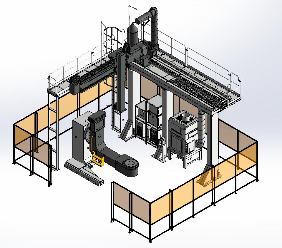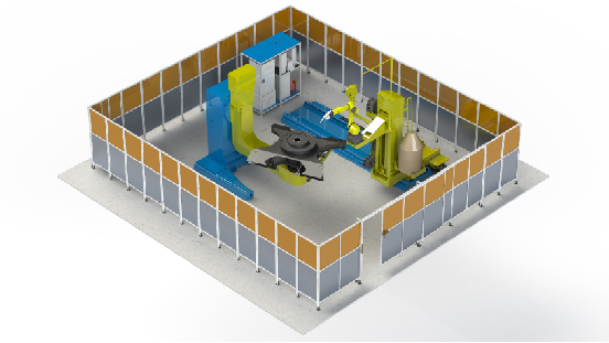 5機(jī)聯(lián)動(dòng)機(jī)器人焊接系統(tǒng);變位機(jī)承載能力達(dá)到1噸,適用于多型號(hào)動(dòng)臂斗桿結(jié)構(gòu)件的焊接;反變形及夾緊定位一體化設(shè)計(jì)伺服夾具,與工件自 動(dòng)化柔性輸送系統(tǒng)配合,可實(shí)現(xiàn)多種型號(hào)工件的自動(dòng)裝夾。