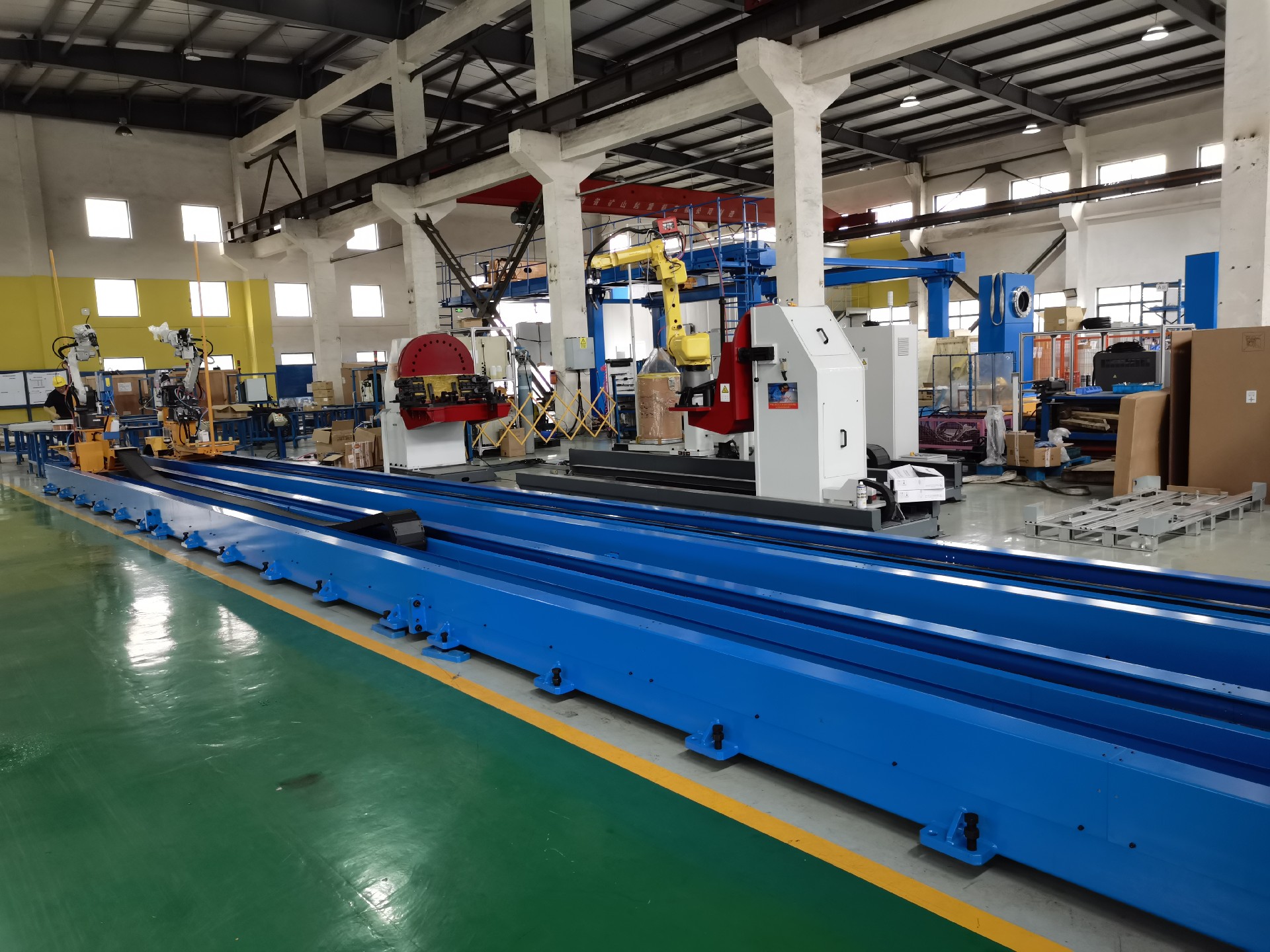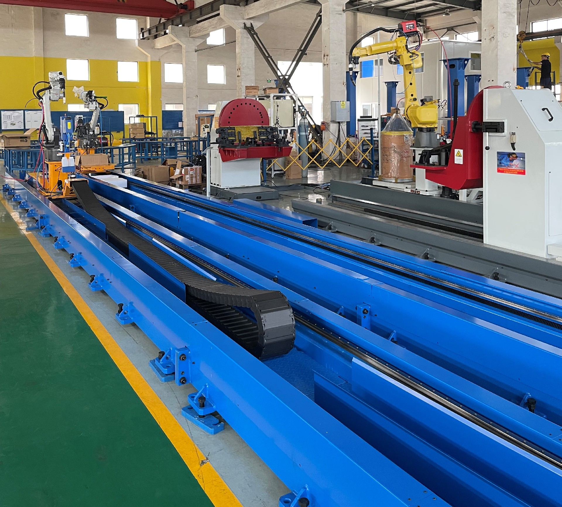 綜上所述,工業(yè)爐水梁機器人焊接工作站通過采用單軸16米行走機器人和雙工位設(shè)計,不僅擴展了機器人的作業(yè)路徑,提高了系統(tǒng)的柔性,還顯著提高了焊接效率和生產(chǎn)效率,為工業(yè)爐水梁等結(jié)構(gòu)件的焊接提供了高效、靈活和經(jīng)濟的自動化焊接解決方案。