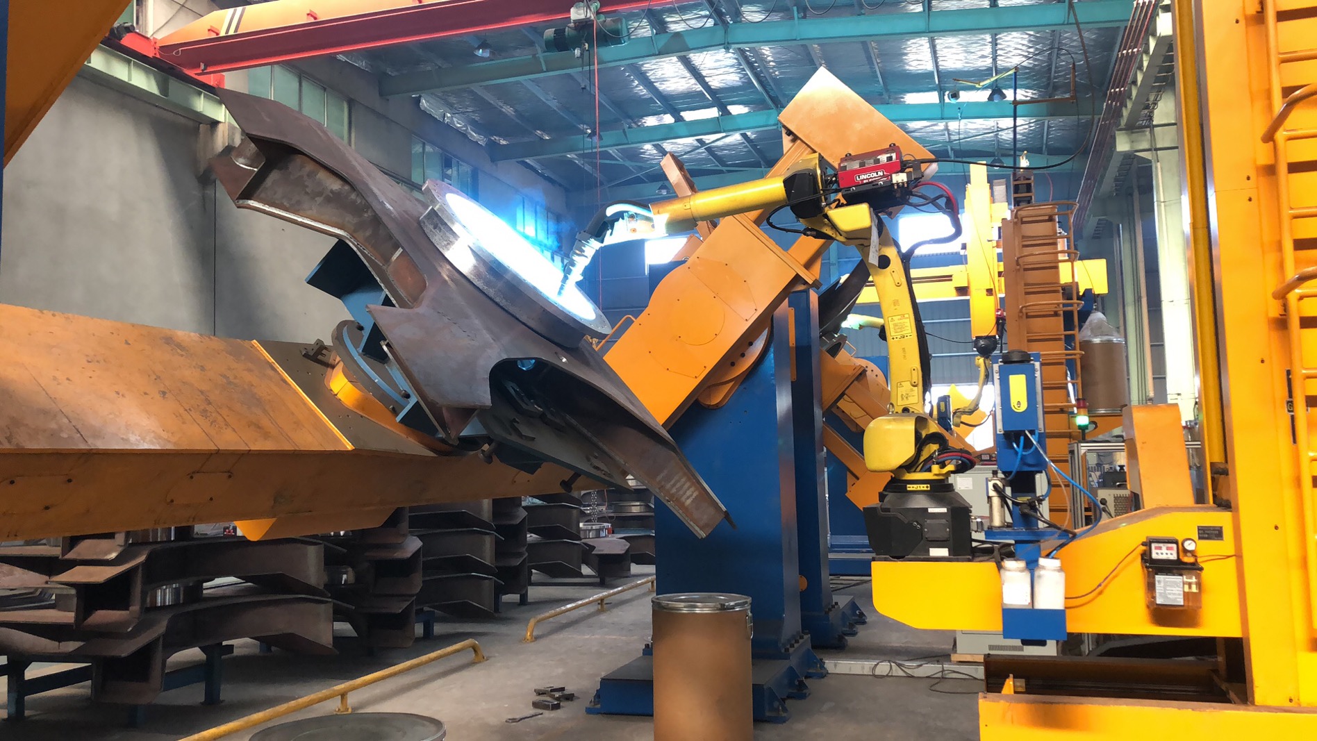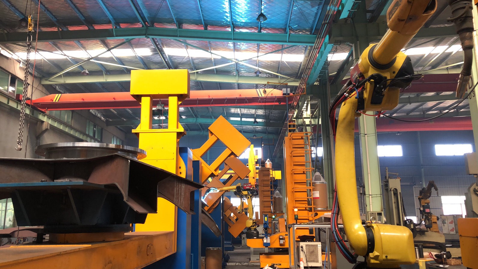 綜上所述,挖掘機上下中心車架焊接機器人工作站通過采用11軸聯(lián)動機器人焊接系統(tǒng)和兩軸H型變位機,不僅優(yōu)化了空間利用,還提高了焊接質(zhì)量和生產(chǎn)效率,為挖掘機等結(jié)構(gòu)件的焊接提供了高效、可靠和靈活的解決方案。