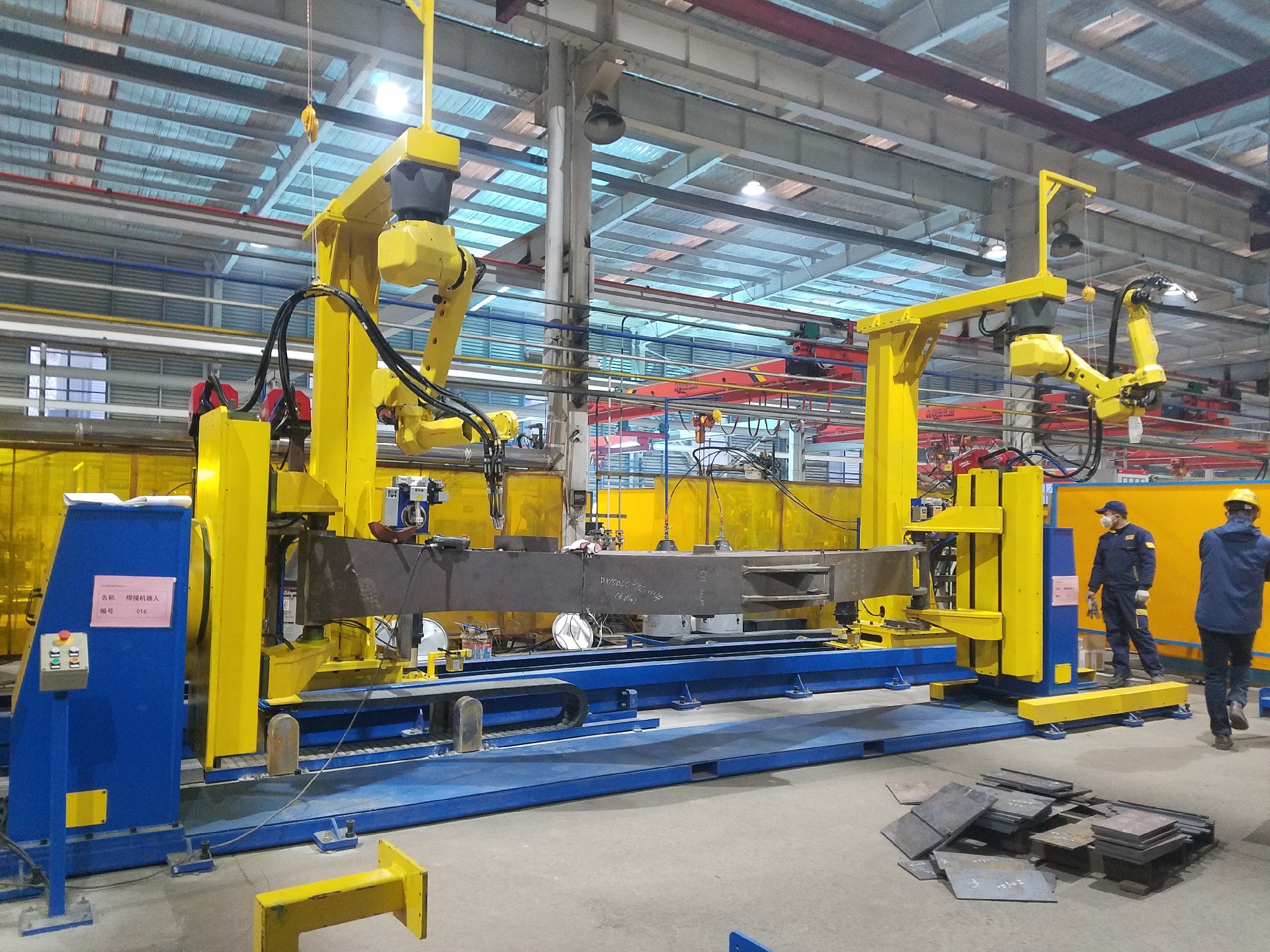 挖掘機(jī)動(dòng)臂焊接雙機(jī)器人工作站,是專為挖掘機(jī)動(dòng)臂設(shè)計(jì)的高度集成化自動(dòng)化焊接解決方案。該工作站采用雙機(jī)器人同時(shí)作業(yè),結(jié)合先進(jìn)的傳感技術(shù)和靈活的變位機(jī)設(shè)計(jì),顯著提高了焊接質(zhì)量和生產(chǎn)效率。