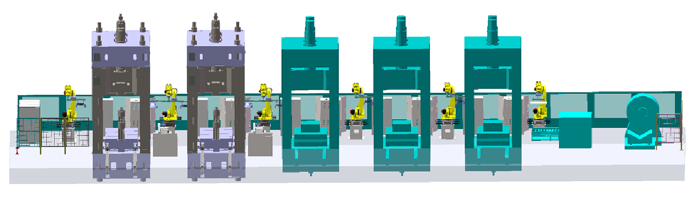 生產(chǎn)線上主要包括的有:搬運(yùn)機(jī)器人本體及輔助設(shè)備,機(jī)器人用末端抓舉夾具模塊,來料定位整理模塊,在線自動(dòng)檢測模塊。所做工件的加工從上料到檢測、碼垛全程實(shí)現(xiàn)無人化、自動(dòng)化。