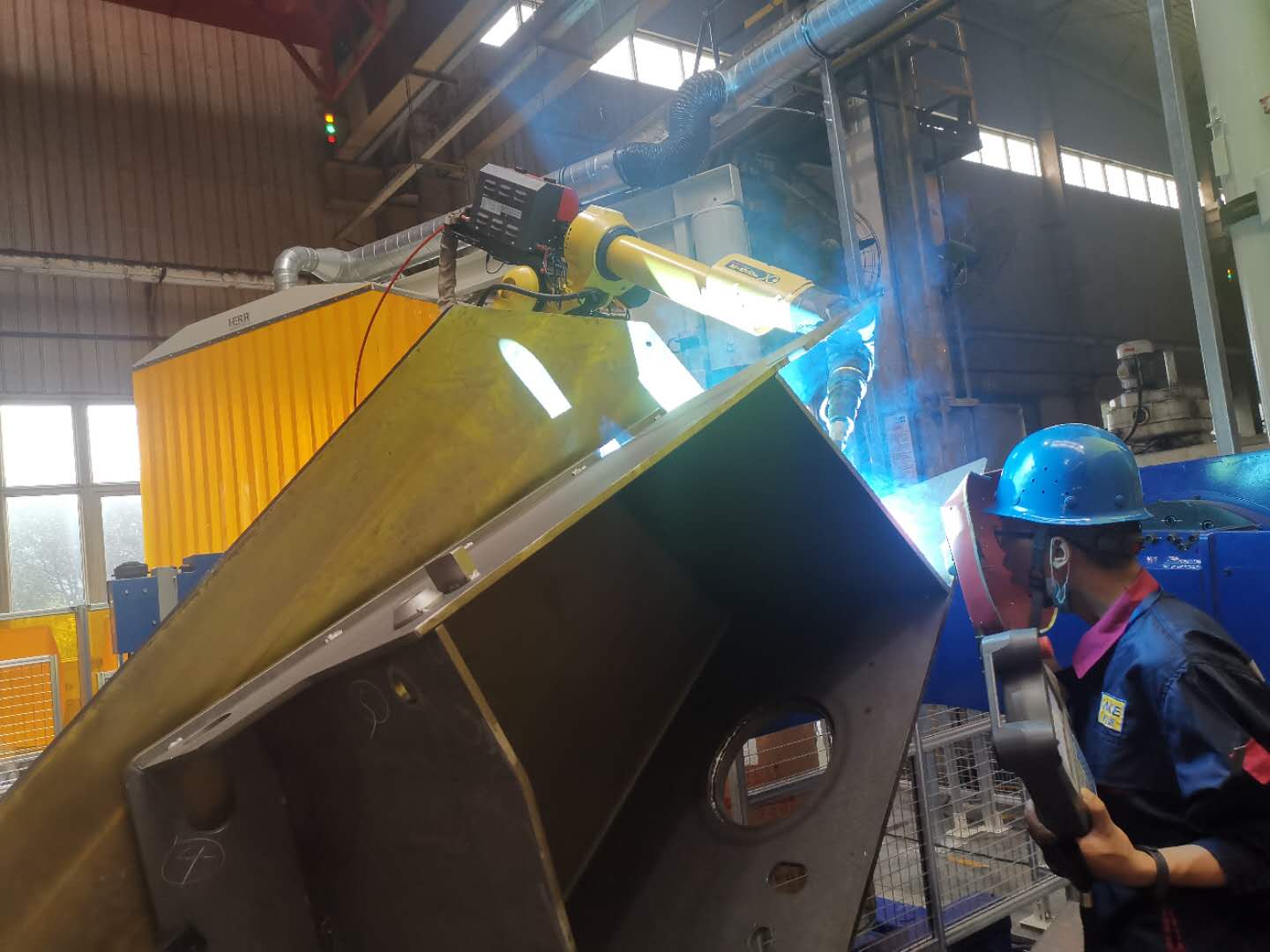 ?跟隨式除塵系統(tǒng):機器人工作站帶有跟隨式除塵系統(tǒng),采用德國品牌赫爾工業(yè)的除塵系統(tǒng),確保焊接過程中的煙塵得到有效處理。