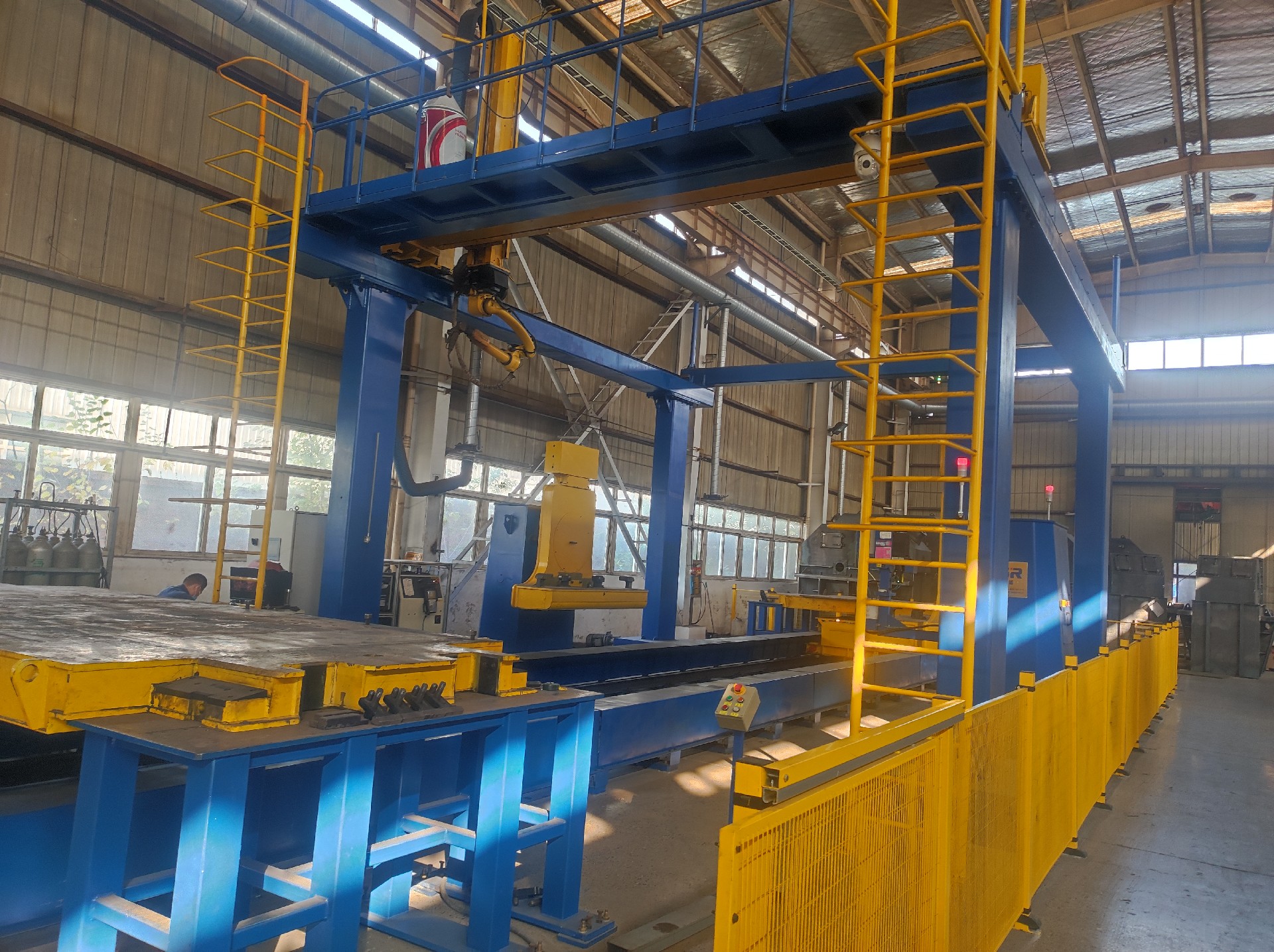 設(shè)備用途:主要用于壓路機輪子筋板的自動拼點、焊接